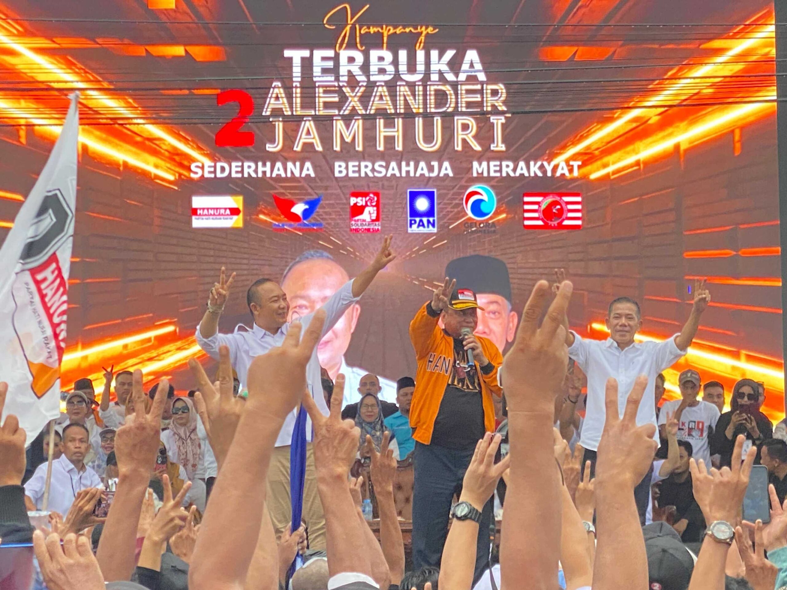Diguyur Hujan, Ribuan Pendukung Alexander – Jamhuri Hadiri Kampanye Terbuka Di Lapangan Sepakat